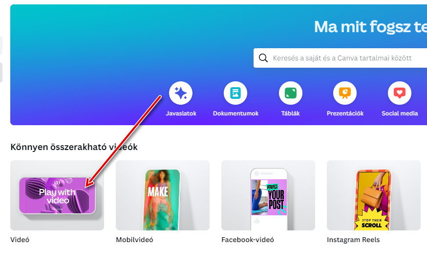 Megnyitod a Canvád, a főoldalon kiválasztod a videó készítése funkciót.