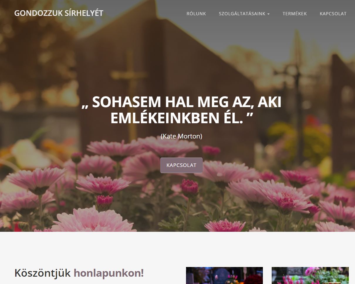 Sírhelyek gondozása és karbantartása szolgáltatást nyújt egyik kedves ügyfelünk ehhez szeretett volna weboldalt. Fontos volt számára, hogy termékeket is jelenítsünk meg a weboldalon, de azokat csak megnézni tudják a megrendelőik és ha szeretnének bármilyen terméket vagy a szolgáltatásuk egyikét, azt az ajánlatkérő felületén keresztül tehessék meg.